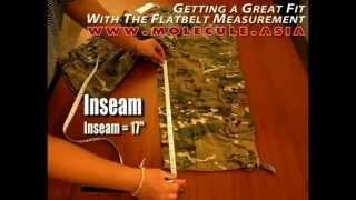 Shows how to correctly measure flatbelt, and translate into a correct waist measurement, to ensure good fit when buying shorts and pants online.